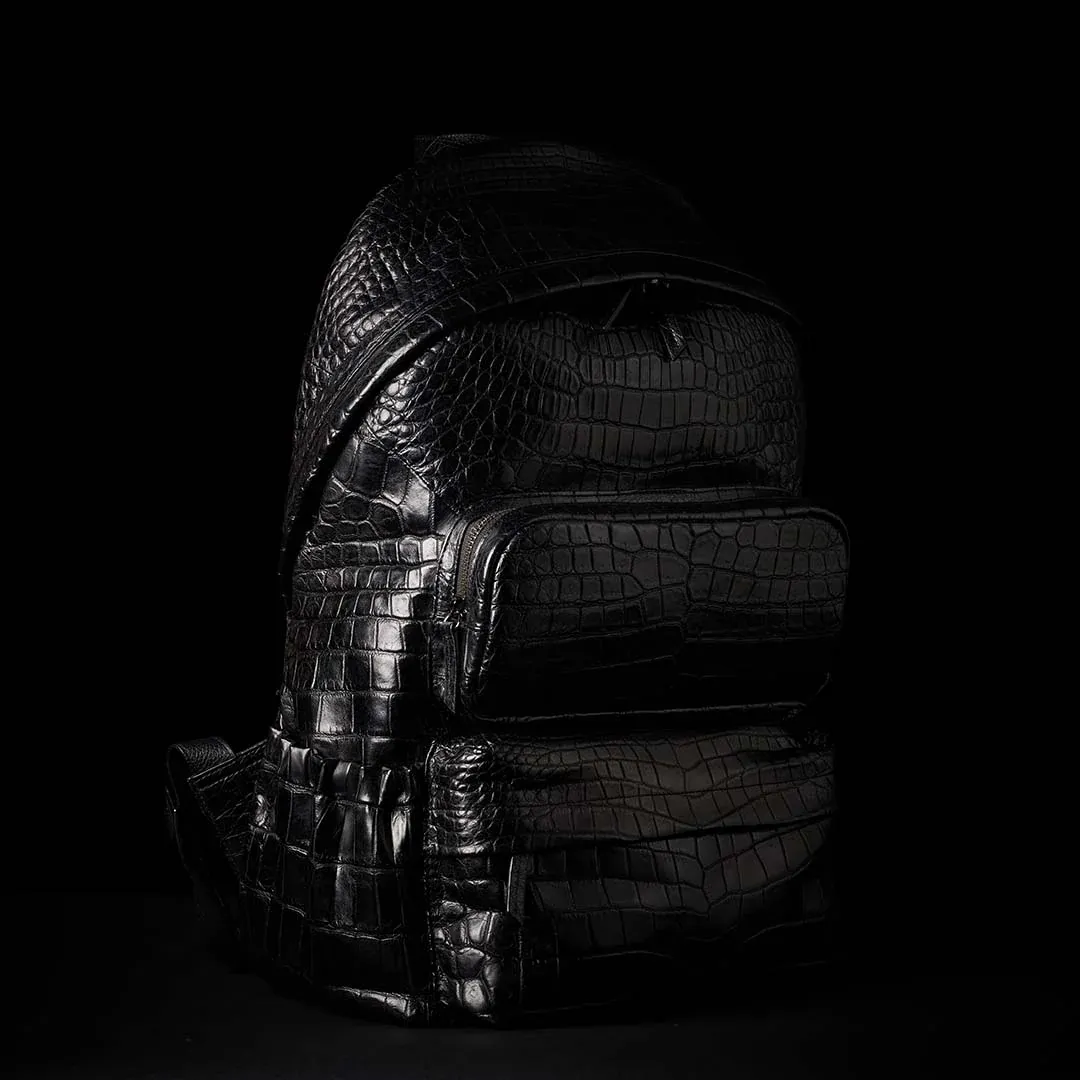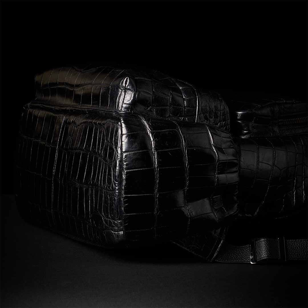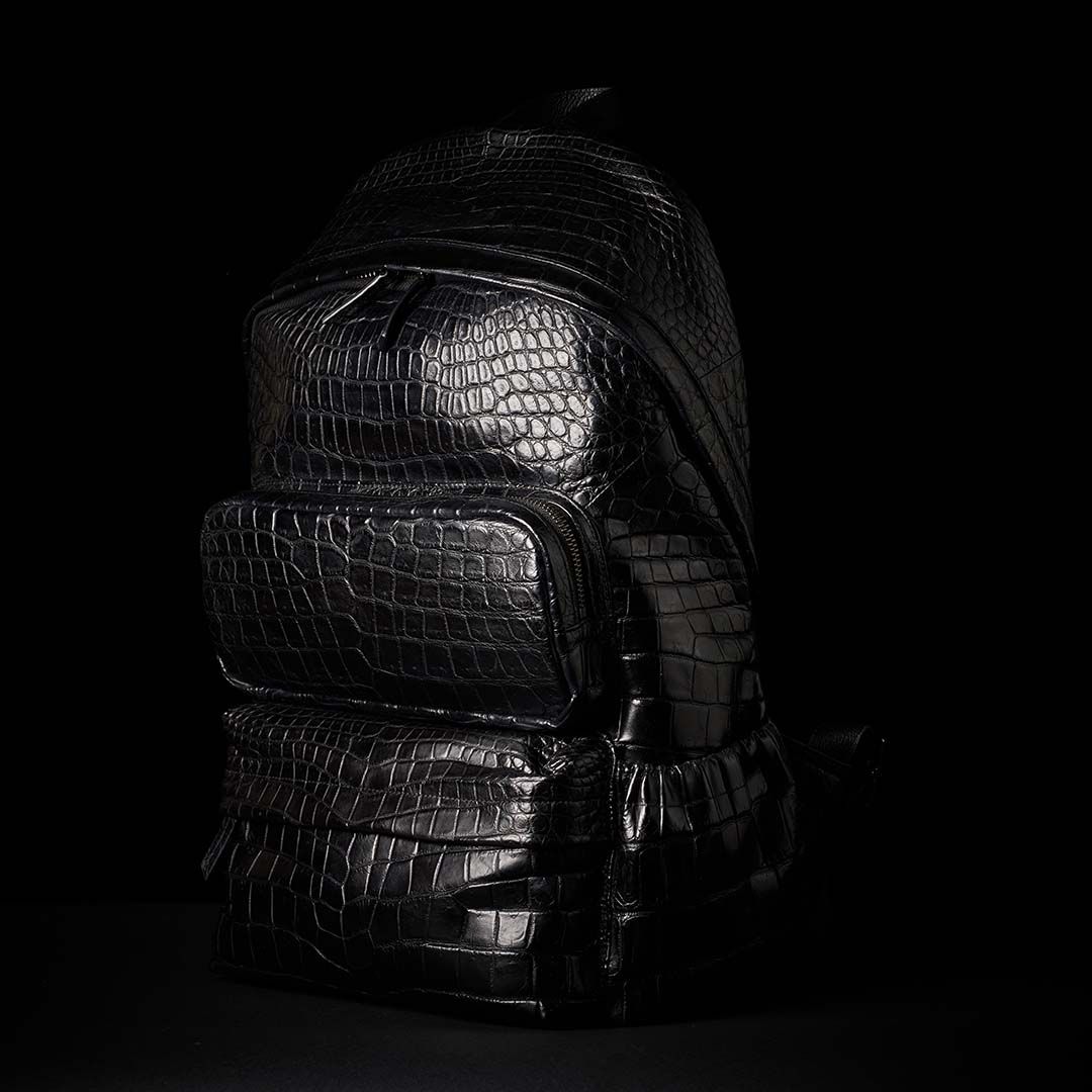 最上級クロコダイルをフルスキンで仕立てたボディは、背負った瞬間から別格の存在感を放つ。大型フロントポケット2つ、パッド入りPCポケット、ケーブル類まで収まる収納力を備えながら、スーツスタイルにも馴染む現代的なシルエットを両立させた。美しさと機能は、ここでは矛盾しない。影のように静かに、しかし確かに——あなたの背中で、本物が語る。