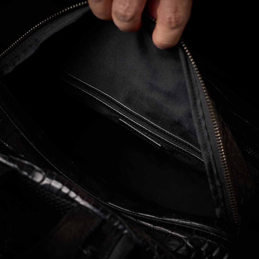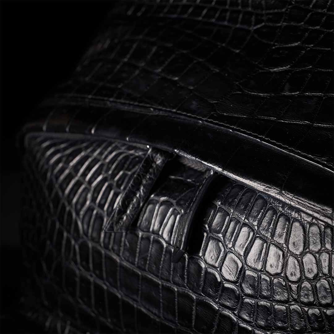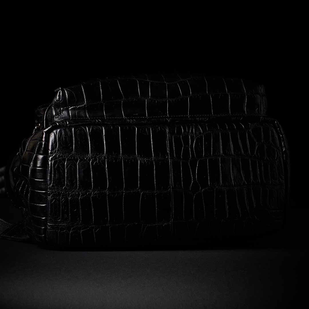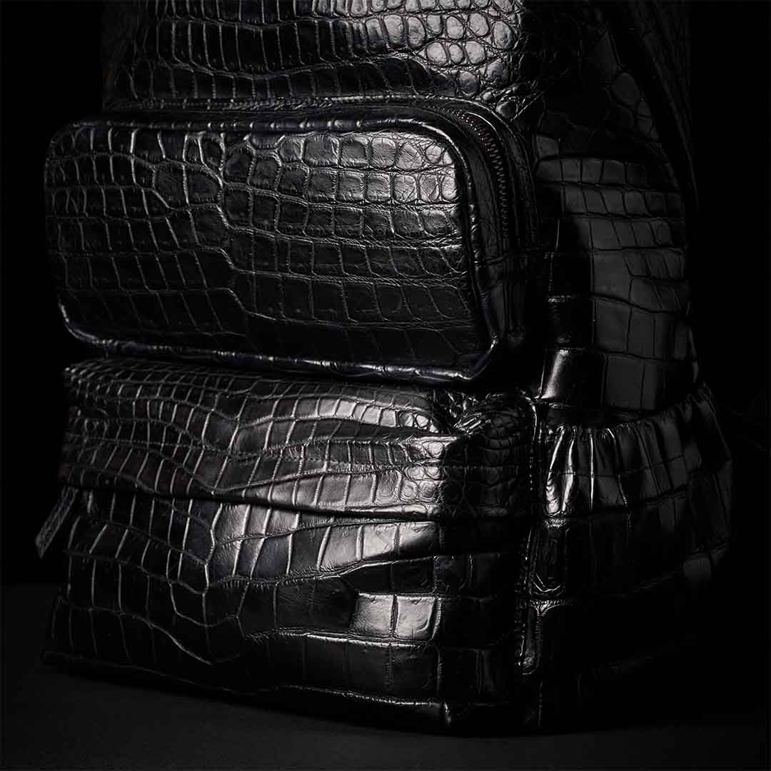 最上級クロコダイルをフルスキンで仕立てたボディは、背負った瞬間から別格の存在感を放つ。大型フロントポケット2つ、パッド入りPCポケット、ケーブル類まで収まる収納力を備えながら、スーツスタイルにも馴染む現代的なシルエットを両立させた。美しさと機能は、ここでは矛盾しない。影のように静かに、しかし確かに——あなたの背中で、本物が語る。